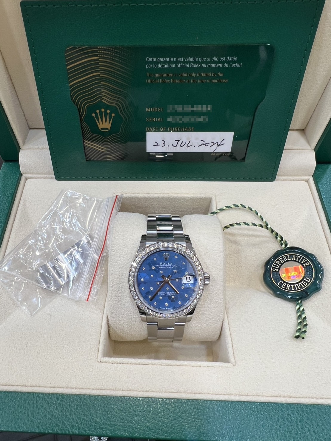 A:腕錶相關附件 -例如:原廠盒、保養卡、說明書、發票以及吊牌